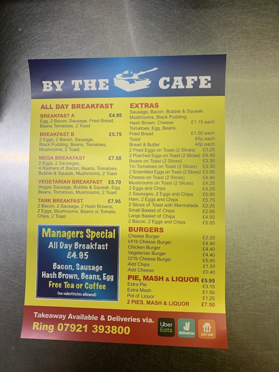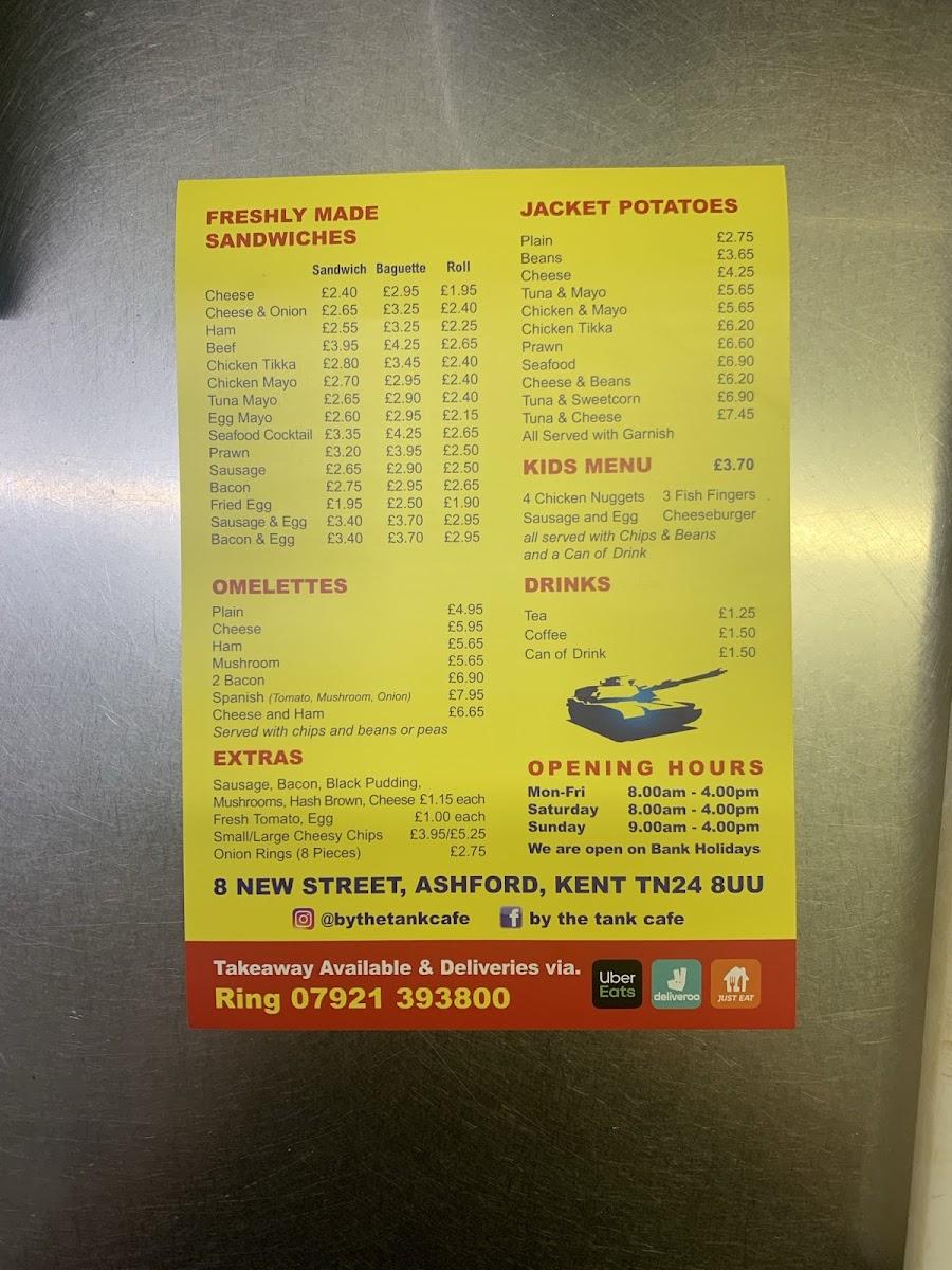 Welcome to By The Tank Cafe, a gem located at 8 New St, Ashford, where comfort food meets warm hospitality. This charming cafe excels in delivering consistently delicious meals that locals swear by. With a menu showcasing hearty options such as traditional pie and mash and wholesome Sunday roast, each dish promises to be freshly prepared with quality ingredients.